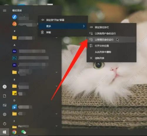 首先选择应用并点击右击键,在弹出选项中,再点击以管理员身份运行即可。