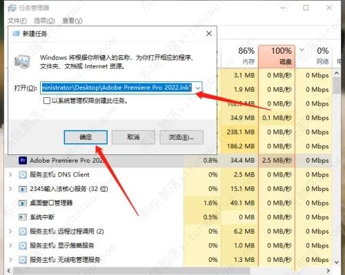最后找到软件后,先确认是否勾选以系统管理权限创建此任务,再点击确定即可。