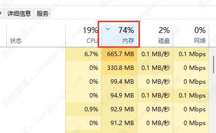 2、我们把电脑系统一键重装点击界面其中的“内存”为向下箭头即可看到哪些进程占用的内存高了。