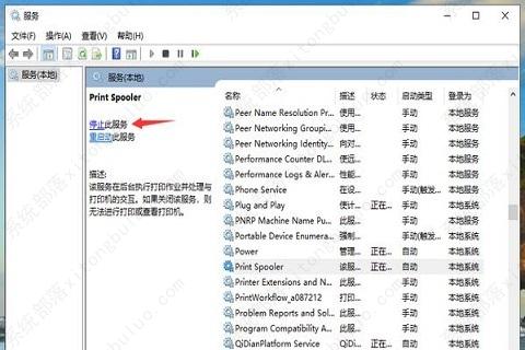 2、接下来,在服务窗口中,找到并停止“print spooler”服务;
