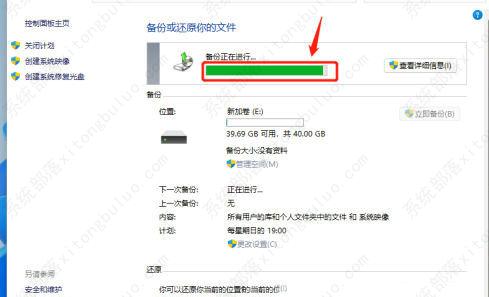 5、查看备份设置,并设置【 备份计划 】,提示备份正在进行,可以查看备份进度。
