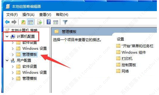3、本地组策略编辑器窗口,展开计算机配置下的管理模板。