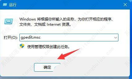 2、运行窗口,输入 gpedit.msc 命令,点按确定或回车,可以打开本地组策略编辑器。