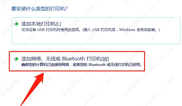 8、然后选择“添加网络、无线或Bluetooth打印机”。