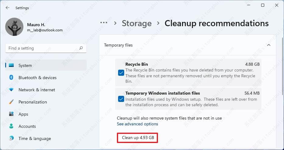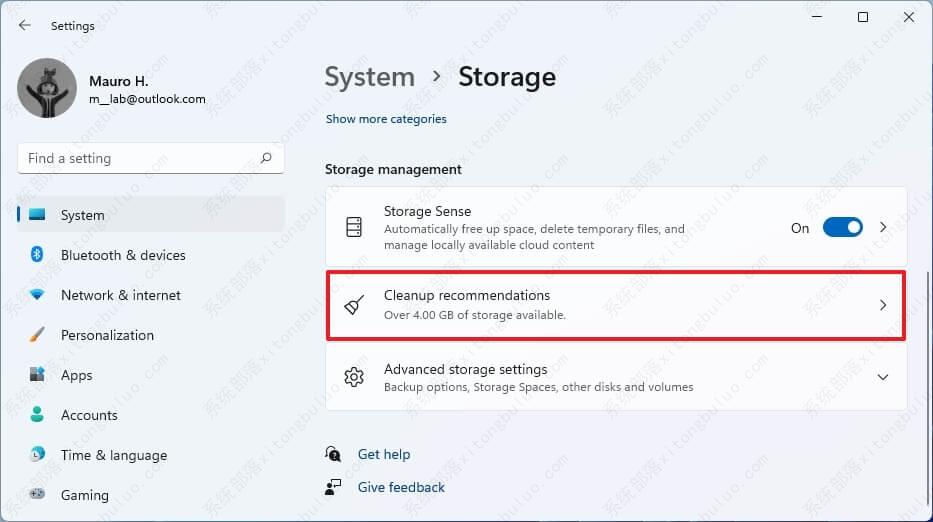 要使用清理建议来释放 Windows 11 上的空间,请使用以下步骤: