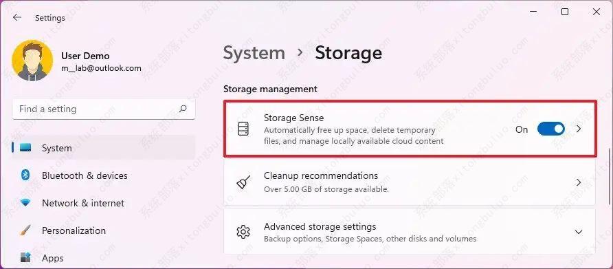 要在 Windows 11 上使用存储感知释放空间,请使用以下步骤: