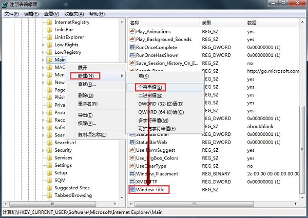 以上就是win7系统注册表修改ie浏览器标题栏文字签名的方法的所有内容了,有想要修改的朋友可以看一看上面的方法。