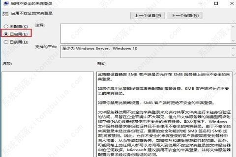 5、当然对于安全性要求不是太高的小伙伴也可以通过降低安全性来提升共享兼容能力,按“Win+R”,输入“gpedit.msc”,打开“计算机配置-管理模板-网络-Lanman工作站”,双击右侧“启用不安全的来宾登录”,选择“已启用”并确认重启就可以了。