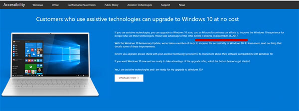 不过,近日,微软悄然在“辅助技术升级页面”更新了2017年12月31日截止的提示,显然要封堵掉这一漏洞。