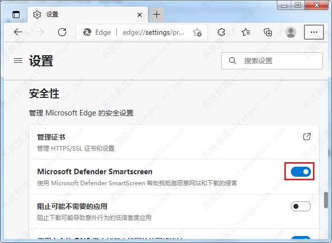 4、最后找到“安全性”下方的“Microsoft Defender Smartscreen”选项,将其右侧的开关按钮关闭即可。