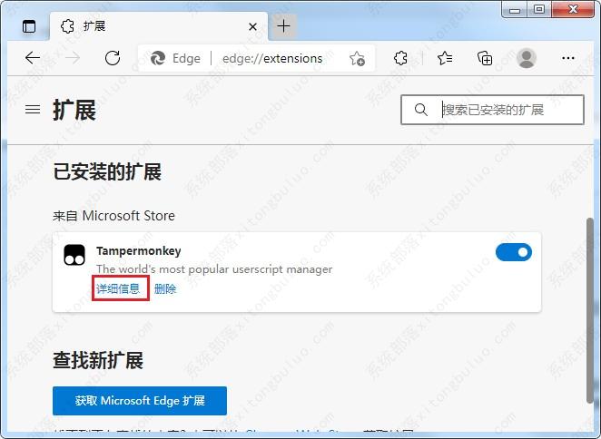 2、在打开的界面中,找到需要管理的扩展程序,点击其下方的“详细信息”选项。