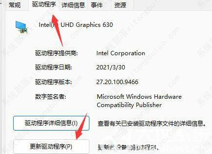 4、接着点击上方“驱动程序”选项卡,再点击其中的“更新驱动程序”。