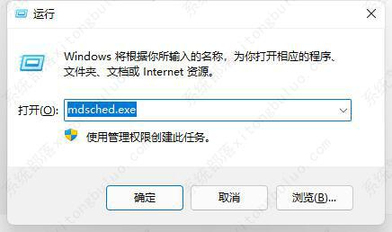 2、首先按下键盘“win+r”打开运行,在其中输入“mdsched.exe”回车确定。