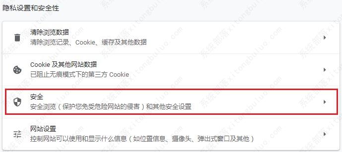 2、在打开的新界面中,找到“隐私设置和安全性”一栏中的“安全”选项。