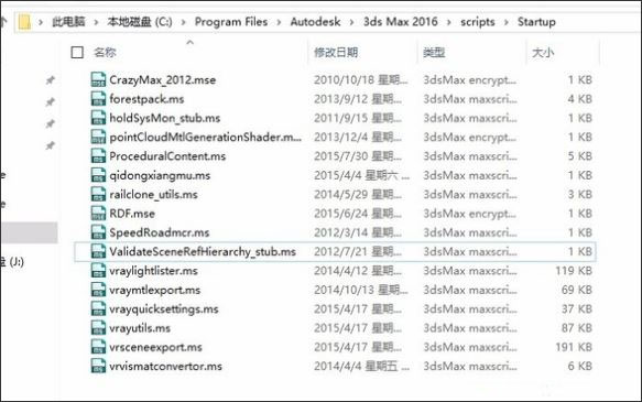 3、打开存在问题的3DMAX 的程序所在目录,同样打开scripts --Startup ,然后将之前复制的文件复制进去若弹出重复提示选择覆盖即可。