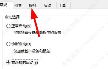 2、在打开的窗口中,点击上方的“服务”选项卡。