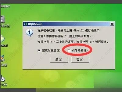 5、在利用U启动还原系统时,也会提供“修复引导分区”的选项,只需要勾选即可对引导分区进行修复,等待修复完成就可以了。