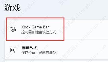 3、随后我们单击右上方游戏下的的Xbox Game Bar选项。