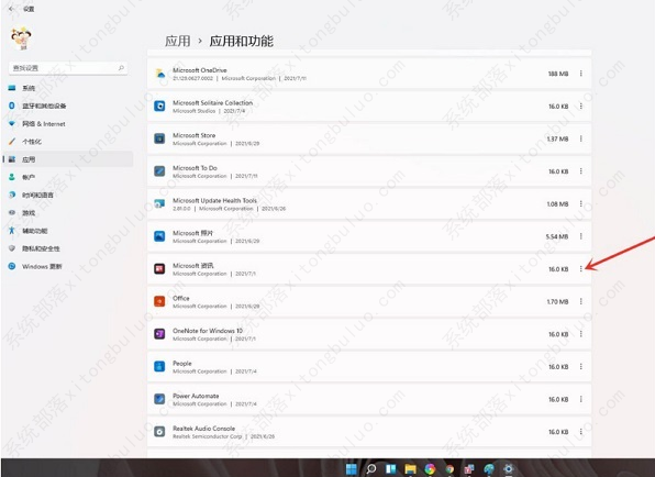 3、进入应用和功能页面后,我们在应用列表中找到需要卸载的程序,点击右侧的三个点。
