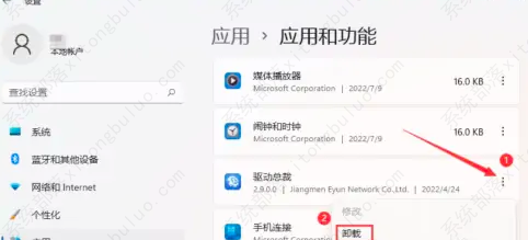 方法二:进入Windows 设置窗口,左侧边栏,点击【应用】找到需要卸载的软件,然后点击【?】。
