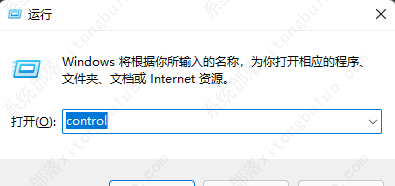 2、运行窗口,输入【control】命令,按确定或回车,可以打开控制面板。