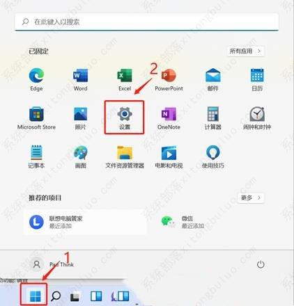 1、首先,按【Win】键,或点击任务栏上的【开始图标】,再点击【设置】打开。