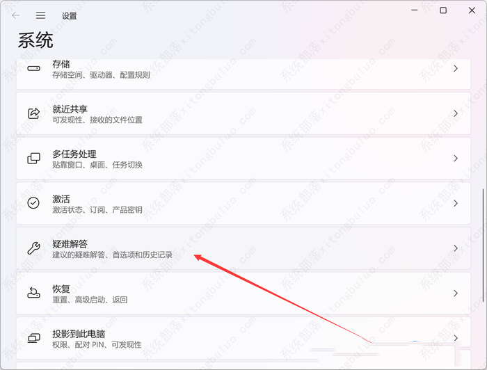3、当前路径为:系统 - 疑难解答,点击选项下的【其他疑难解答】。