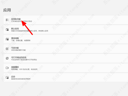 在应用页面,单击应用和功能。