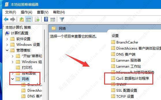 4、点击左边“网络”,双击右边“QoS数据包计划程序”。