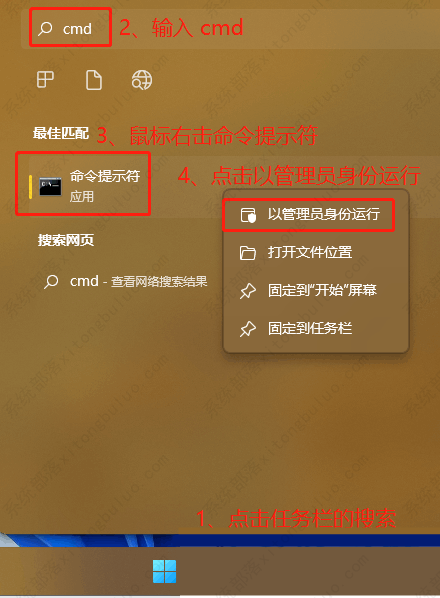 1、首先,按键盘上的【Win+S】组合键,或点击任务栏上的【搜索图标】,Windows 搜索窗口,顶部搜索栏输入【cmd】命令,然后在系统给出的最佳匹配【命令提示符应用】上,点击右键,打开的菜单项中,选择【以管理员身份运行】。