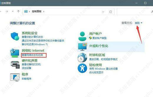 2、控制面板窗口,切换到【类别】查看方式,然后点击调整计算机的设置下的【查看网络状态和任务】。