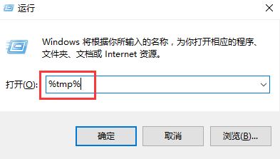 4、按下快捷键“win+R”,然后输入:%tmp% ;