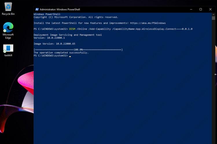 在弹出窗口中,键入命令,然后按Enter键:DISM /Online /Add-Capability /CapabilityName:App.WirelessDisplay.Connect~~~~0.0.1.0