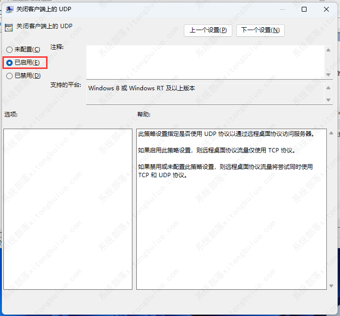 如果禁用或未配置此策略设置,则远程桌面协议流量将尝试同时使用 TCP 和 UDP 协议。