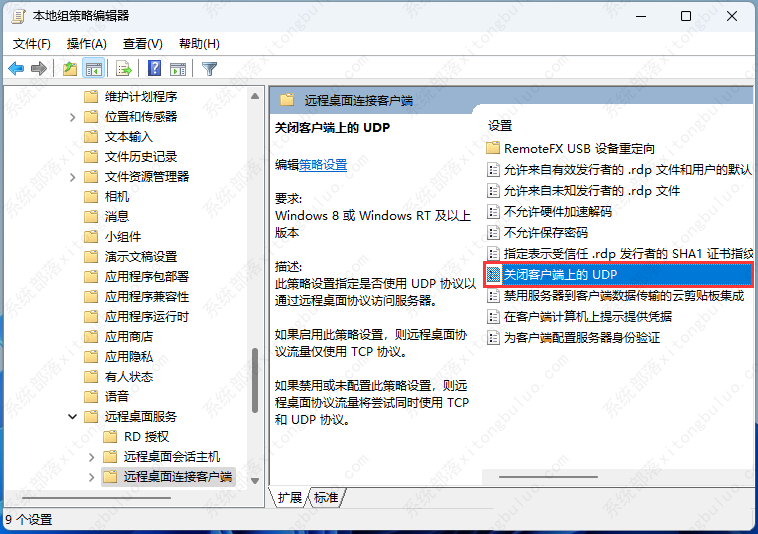 然后双击打开【关闭客户端上的 UDP】