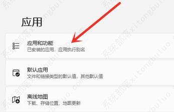 3、然后在右侧应用设置中进入“应用和功能”。