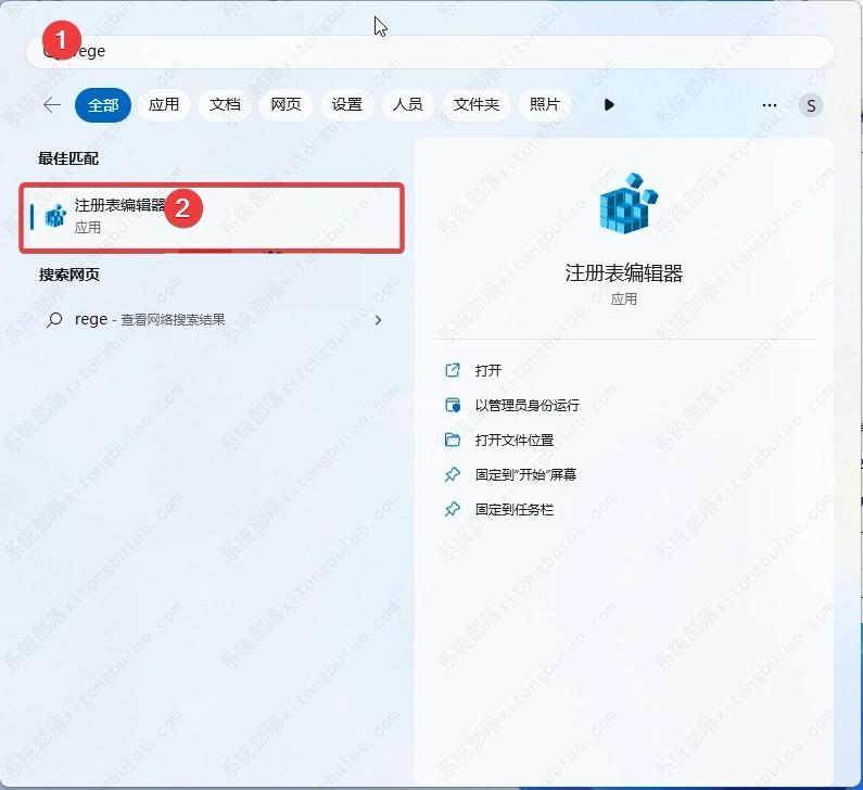 2、搜索 regedit,然后打开注册表编辑器。