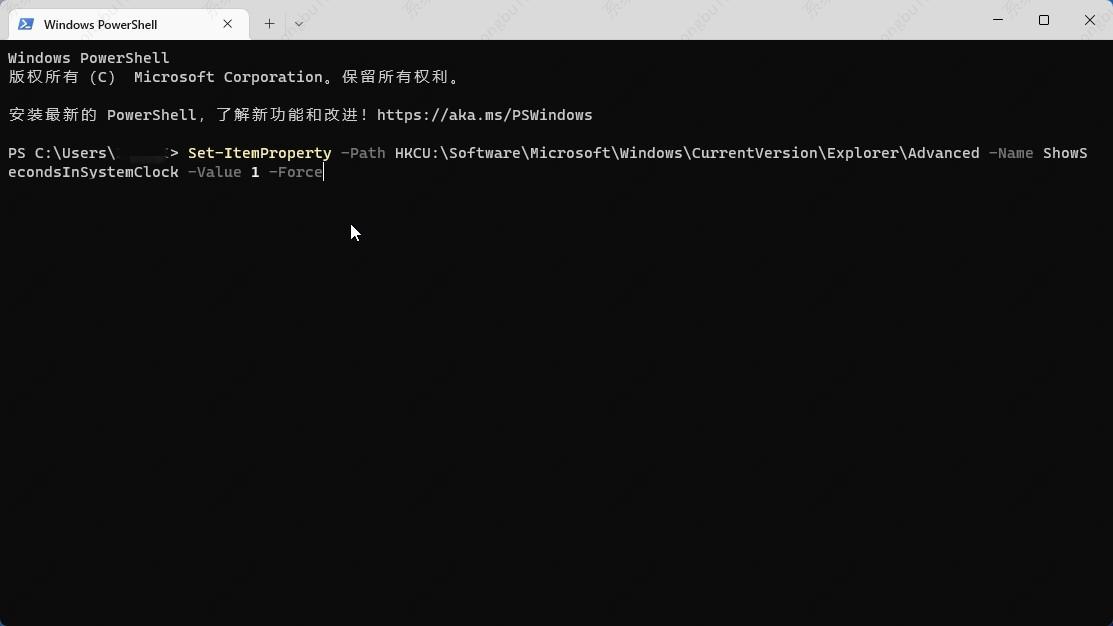 使用 Windows PowerShell 在系统托盘时钟中显示秒数