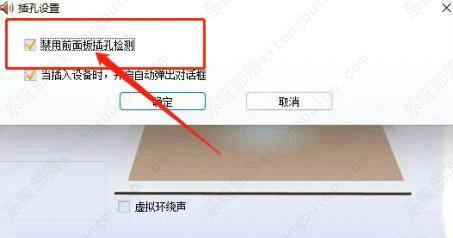 3、打开插孔设置,勾选禁用前面板插孔检测,点击确定即可,如图所示。
