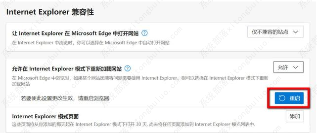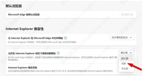 3、将【允许在Internet Explorer模式下重新加载网站】选择为【允许】。