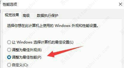 4、在“视觉效果”下勾选“调整为最佳性能”并点击“确定”保存即可。