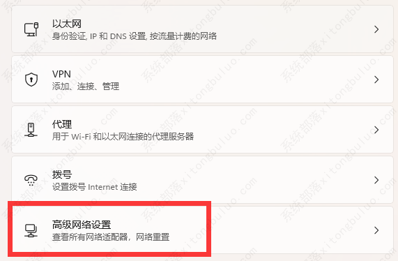 3、接着打开其中的“高级网络设置”(如图所示)。