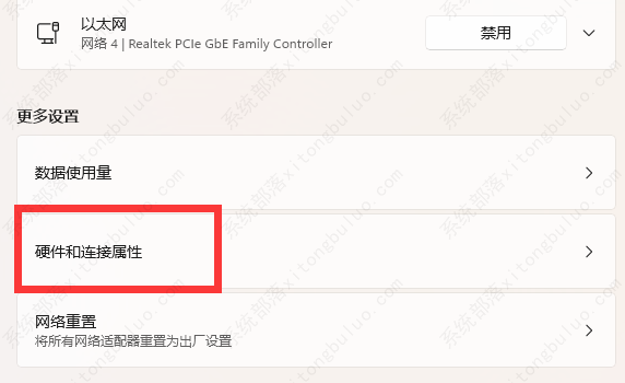 4、随后进入更多设置里的“硬件和连接属性”(如图所示)。