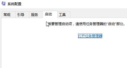 切换到 启动 选卡,点击【打开任务管理器】,打开任务管理器 将所有的开机启动软件