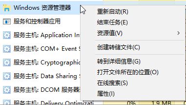 2、在任务管理器界面找到 Windows 资源管理器 ,在该选项上单击右键,选择 【重新启动】即可!