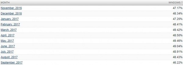 Win7用户仍然接近半数 Win10超越还需很长时间