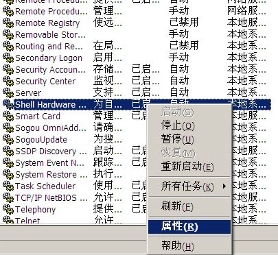 5、选中Shell Hardware Detection右击,单击属性。