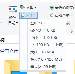 5、当我们点击“大小”的时候,在弹出的菜单中我们需要选择需要搜索的文件的大小,如大(1-16MB);