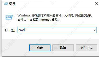 3、接着使用上面相同的方法打开运行,输入“cmd”回车确定。