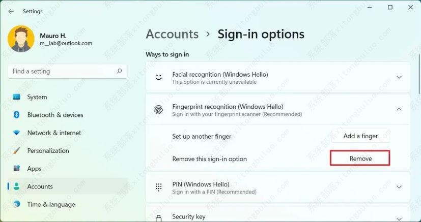 如何在 Windows 11 上移除 Windows Hello 指纹识别?